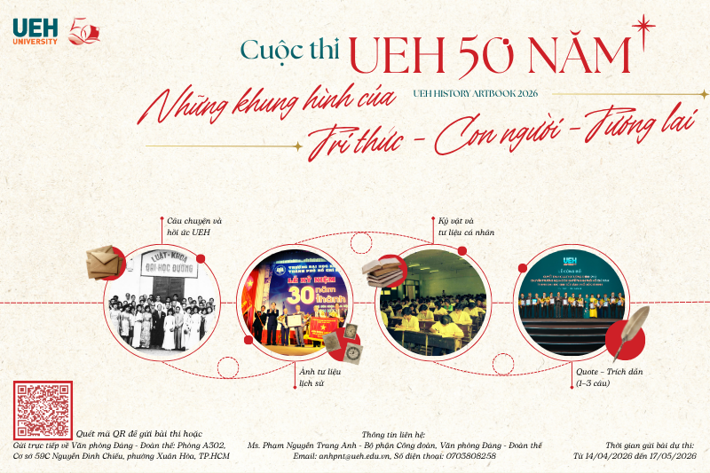 - Chuỗi kết nối đối tác quốc tế hàng đầu UEH 50 Years – 50 Partners – Embracing Global Connection (3–12.2026): Kết nối chiến lược với 50 đối tác trên 5 châu lục, khẳng định vị thế và mạng lưới hợp tác toàn cầu của UEH.